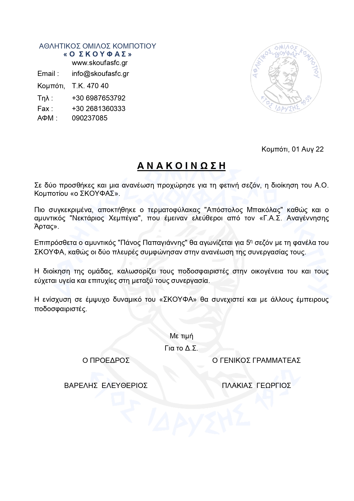 Ανανεώσεων συνέχεια στο "ΣΚΟΥΦΑ"