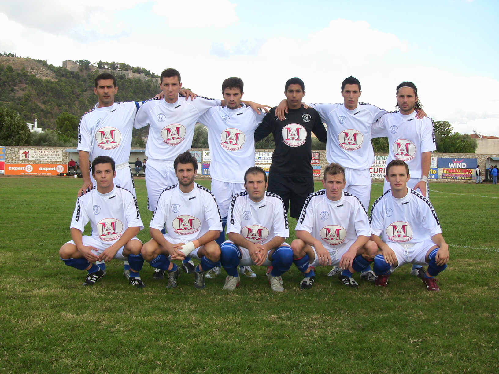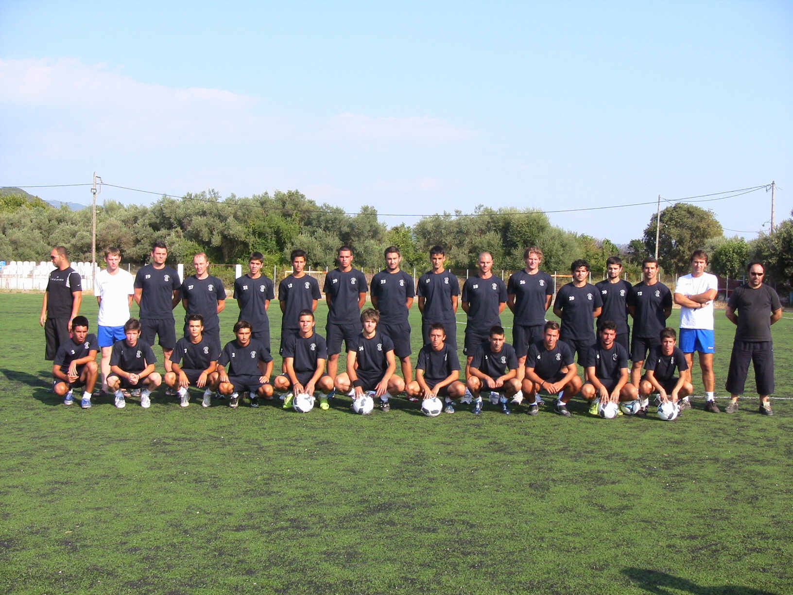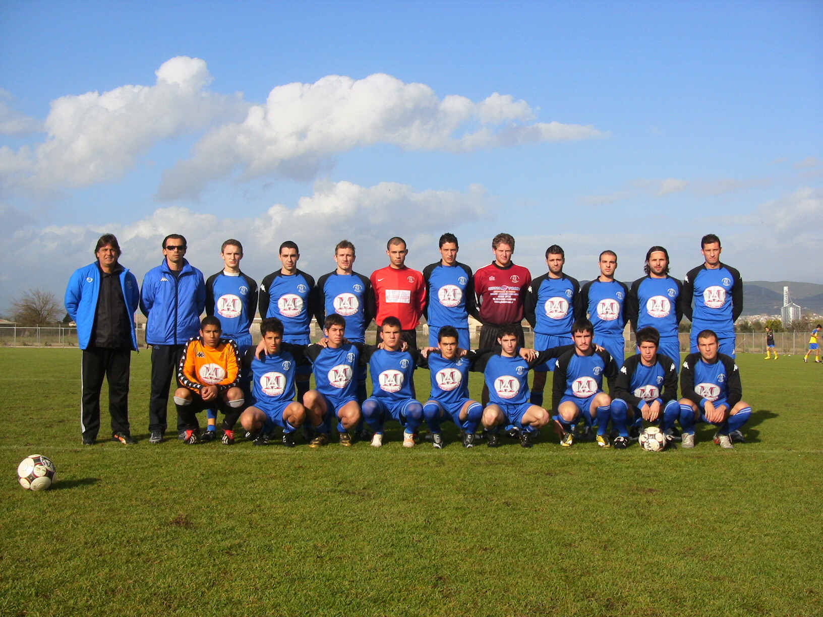 Η φωτογραφία αυτή είναι από την πρώτη προπόνηση της ομάδας η οποία έγινε στην πλατεία του χωριου, αφού γήπεδο στο χωριό δεν υπήρχε. Όρθιοι από αριστερά: