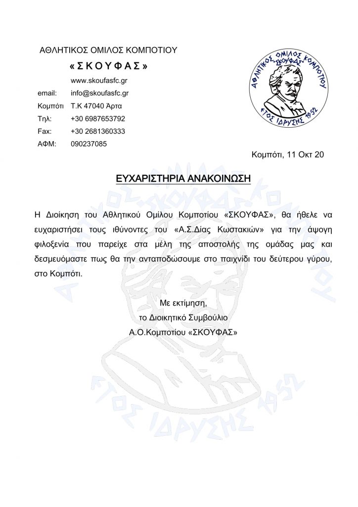 Η ομάδα του ΣΚΟΥΦΑ παρατάχτηκε στον αγώνα με τους: